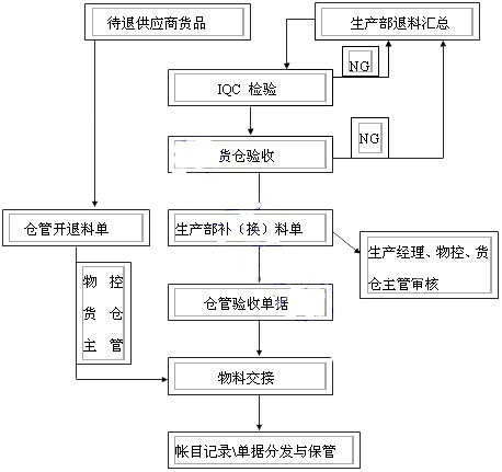 4、供應商所送物料為誤送,超送或其他原因,經物控、采購、總經理協商簽名后,辦理退貨手續。此類退料不計入財務核算范圍。