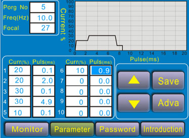 2、 本模具激光焊機(jī)系統(tǒng),提供了多達(dá)50組波形參數(shù)儲存。由于模具激光燒焊時,隨時會焊接不同材料,系統(tǒng)參數(shù)可隨時調(diào)取使用,無需重新編輯波形,方便快捷。