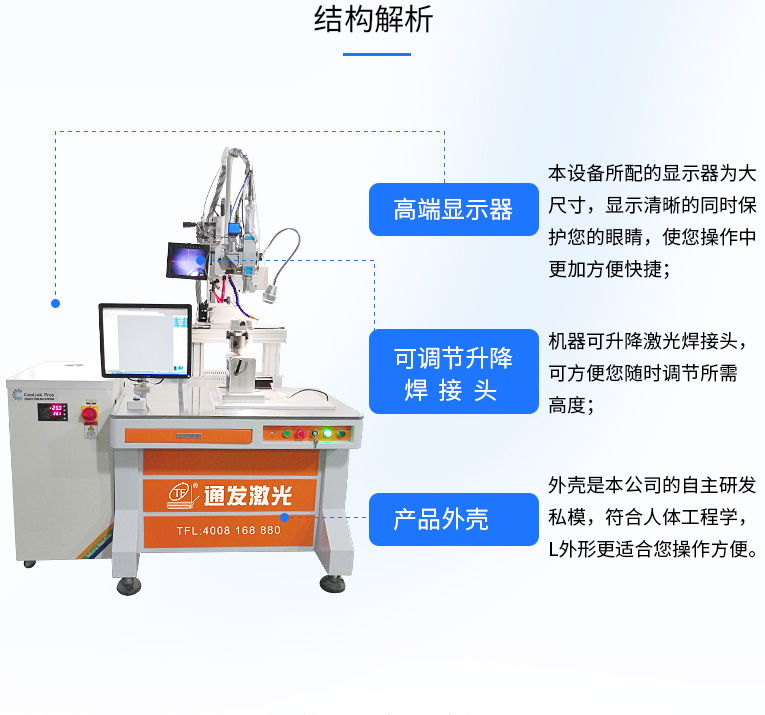 2、強(qiáng)大的PC控制,易于編程、調(diào)試和維護(hù)。可完成自動(dòng)或半自動(dòng)的點(diǎn)焊、對(duì)接焊、疊焊、密封焊,針對(duì)復(fù)雜的平面直線、圓弧及任意軌跡的焊接。